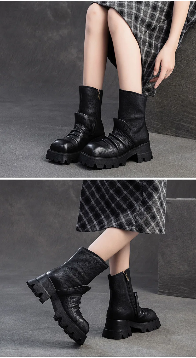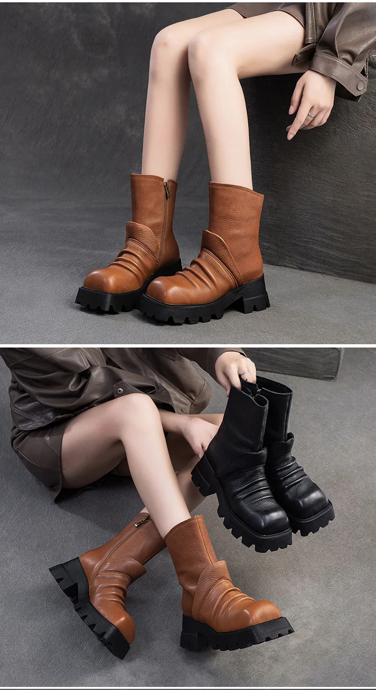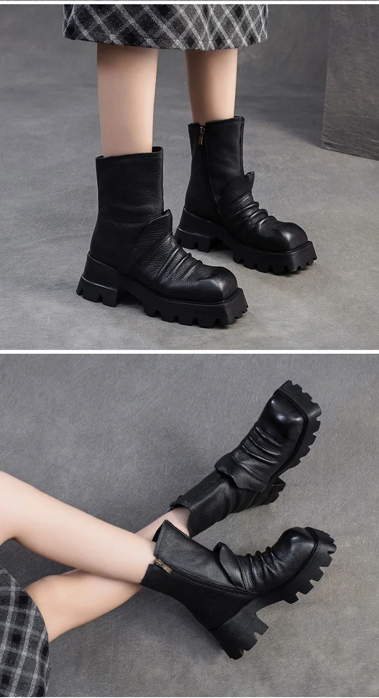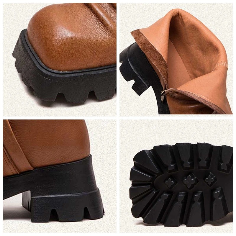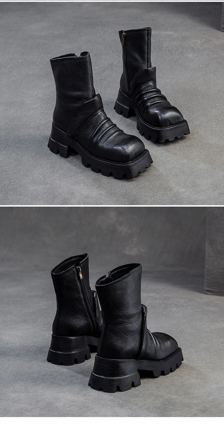 Be the first to review “6.5cm Natural Cow Genuine Leather Platform Wedge Motorcycle Boots Women Flats ZIP Ankle Booties Punk Knee High Booties”