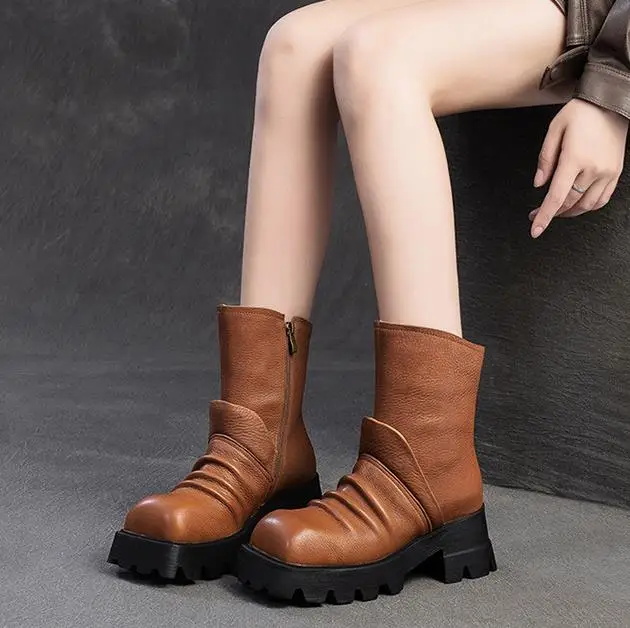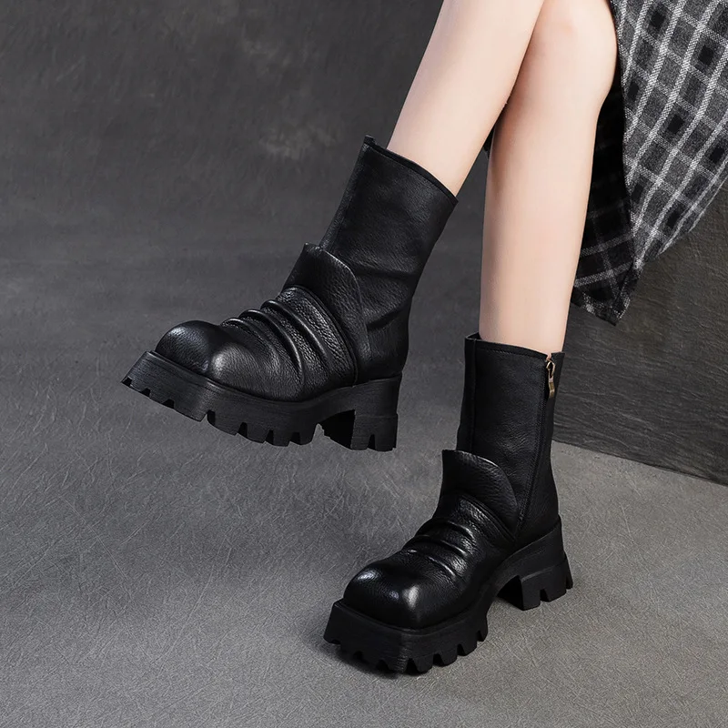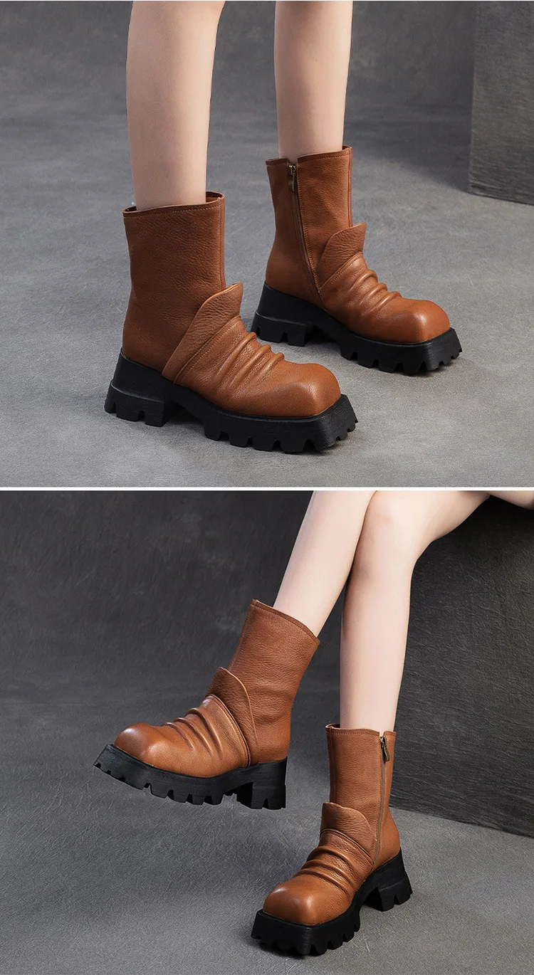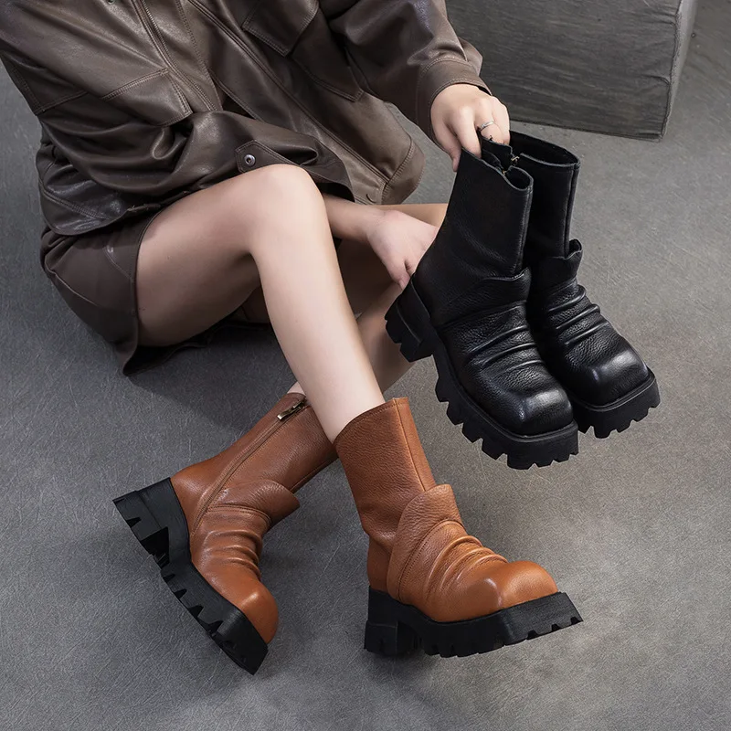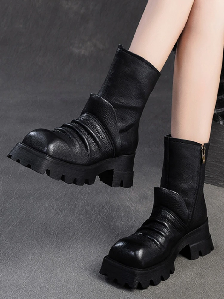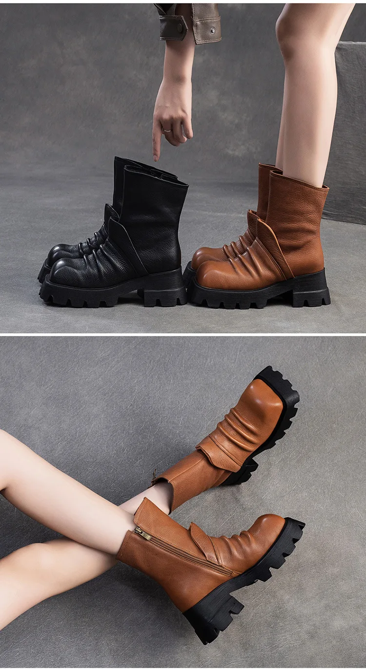 Be the first to review “6.5cm Natural Cow Genuine Leather Platform Wedge Motorcycle Boots Women Flats ZIP Ankle Booties Punk Knee High Booties”