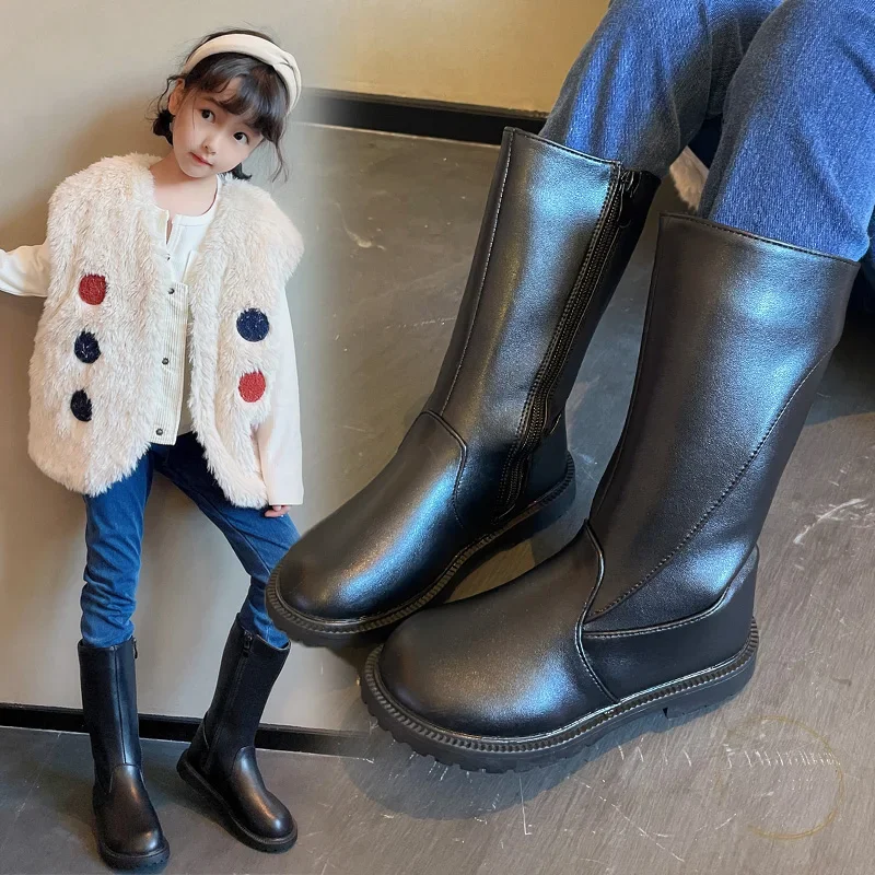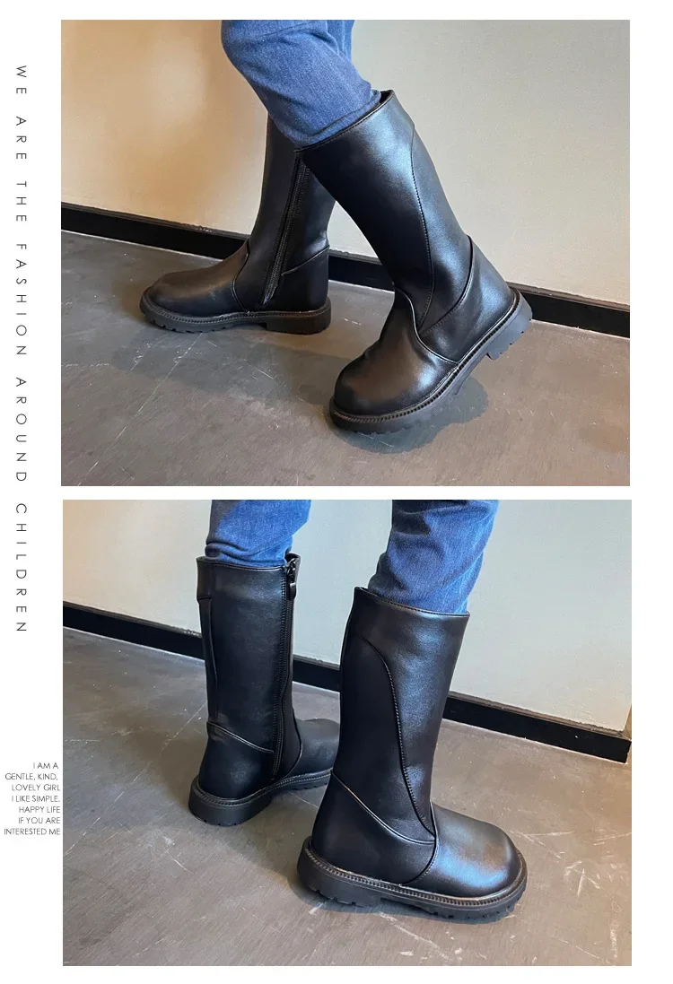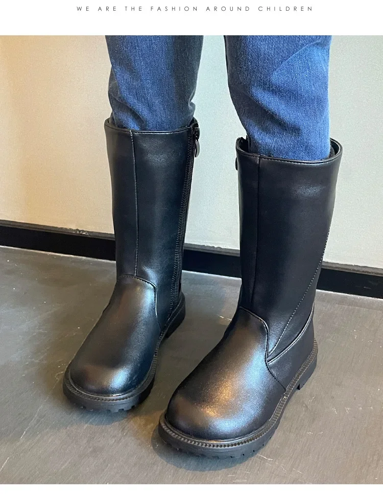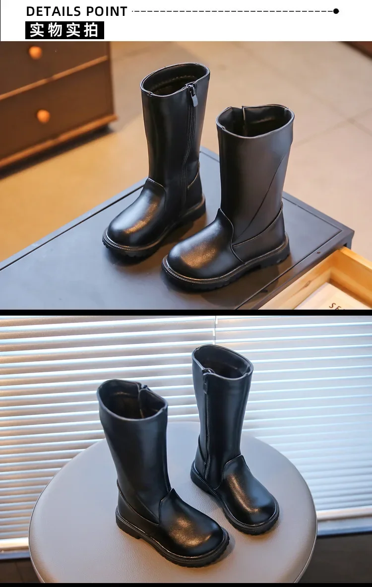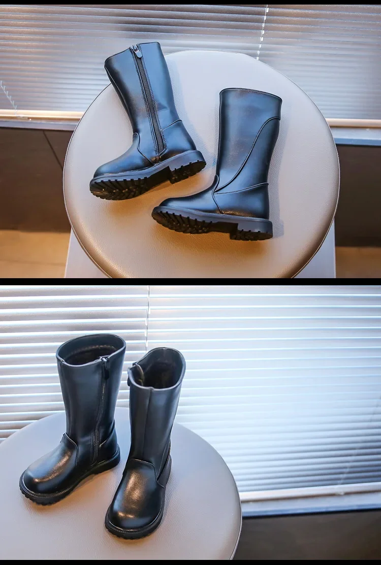 Be the first to review “Girls Long Boots Black PU Leather Kids High Boots 2025 Autumn Winter Fashion Warm Fur Children Motorcycle Boots Simple Classic”