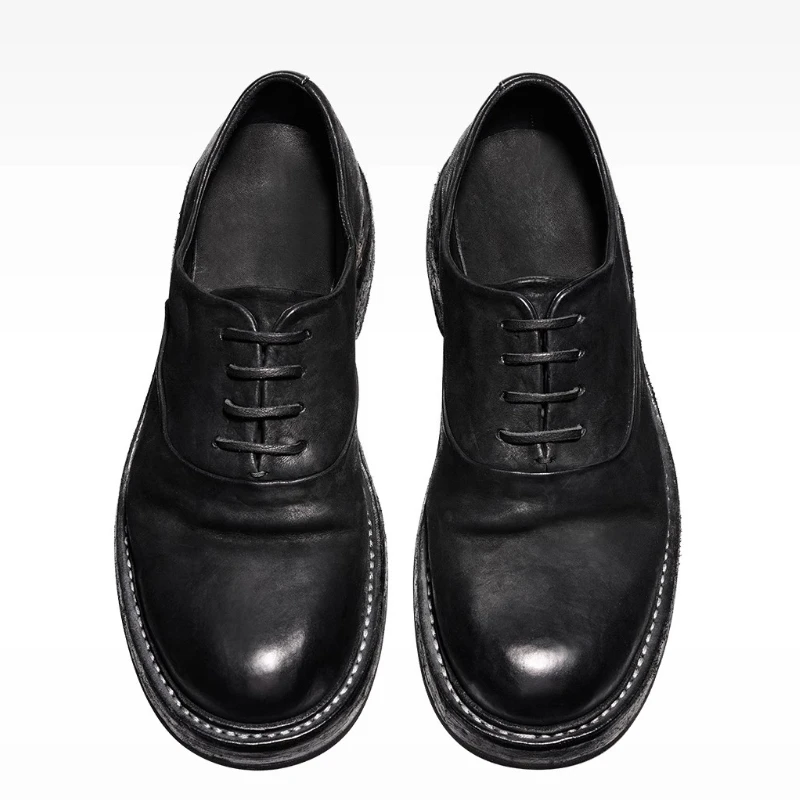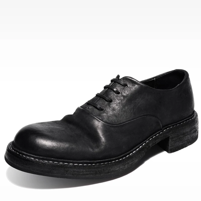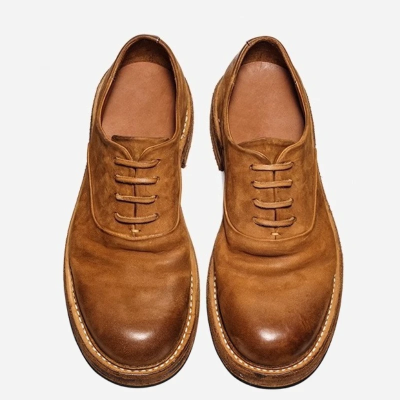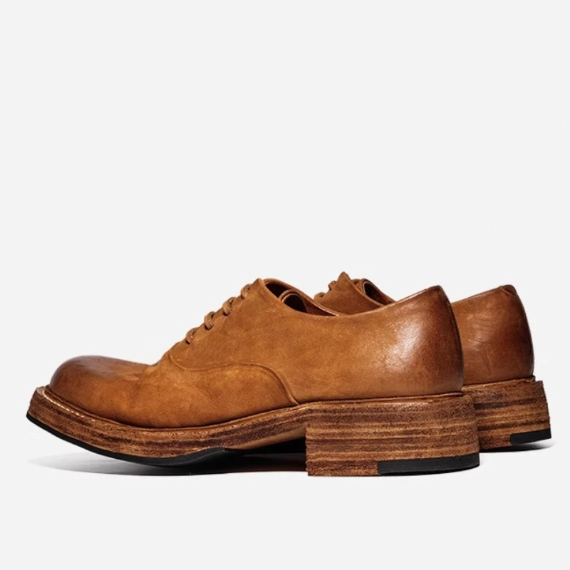 Be the first to review “Men’s Dress Shoes Pumpkin Colour Washed Horse Leather Hand Sewn Thick Platform Oxfords Shoes Breathable Comfortable Derby Shoes”