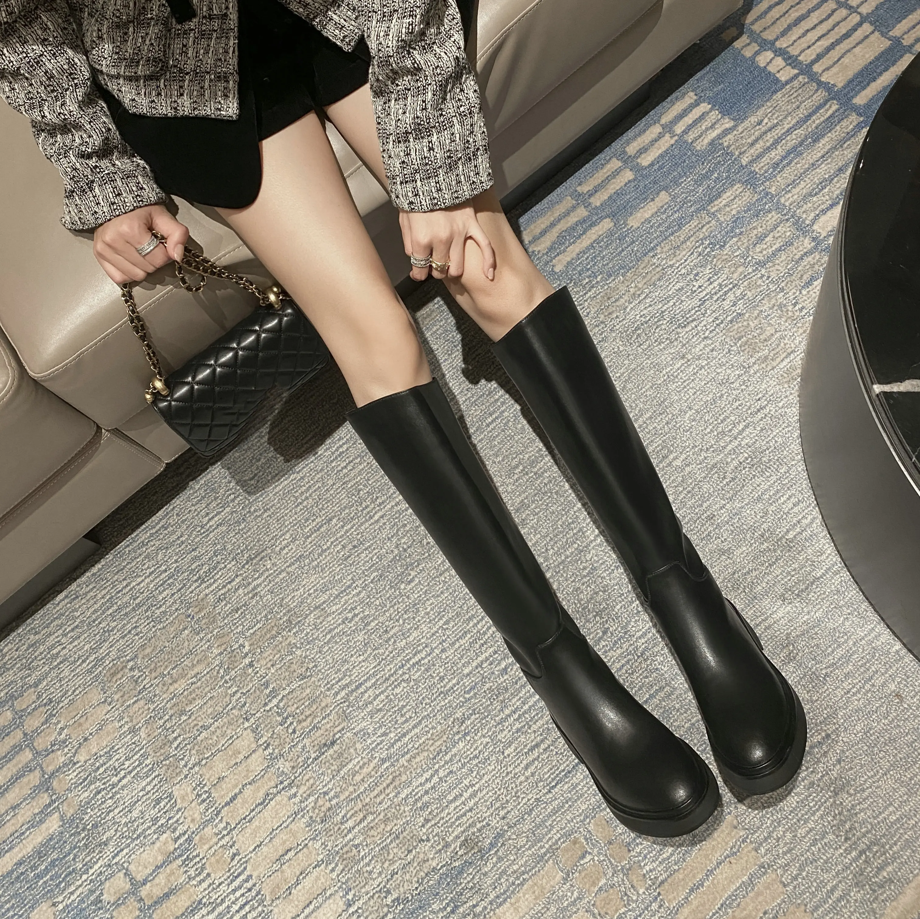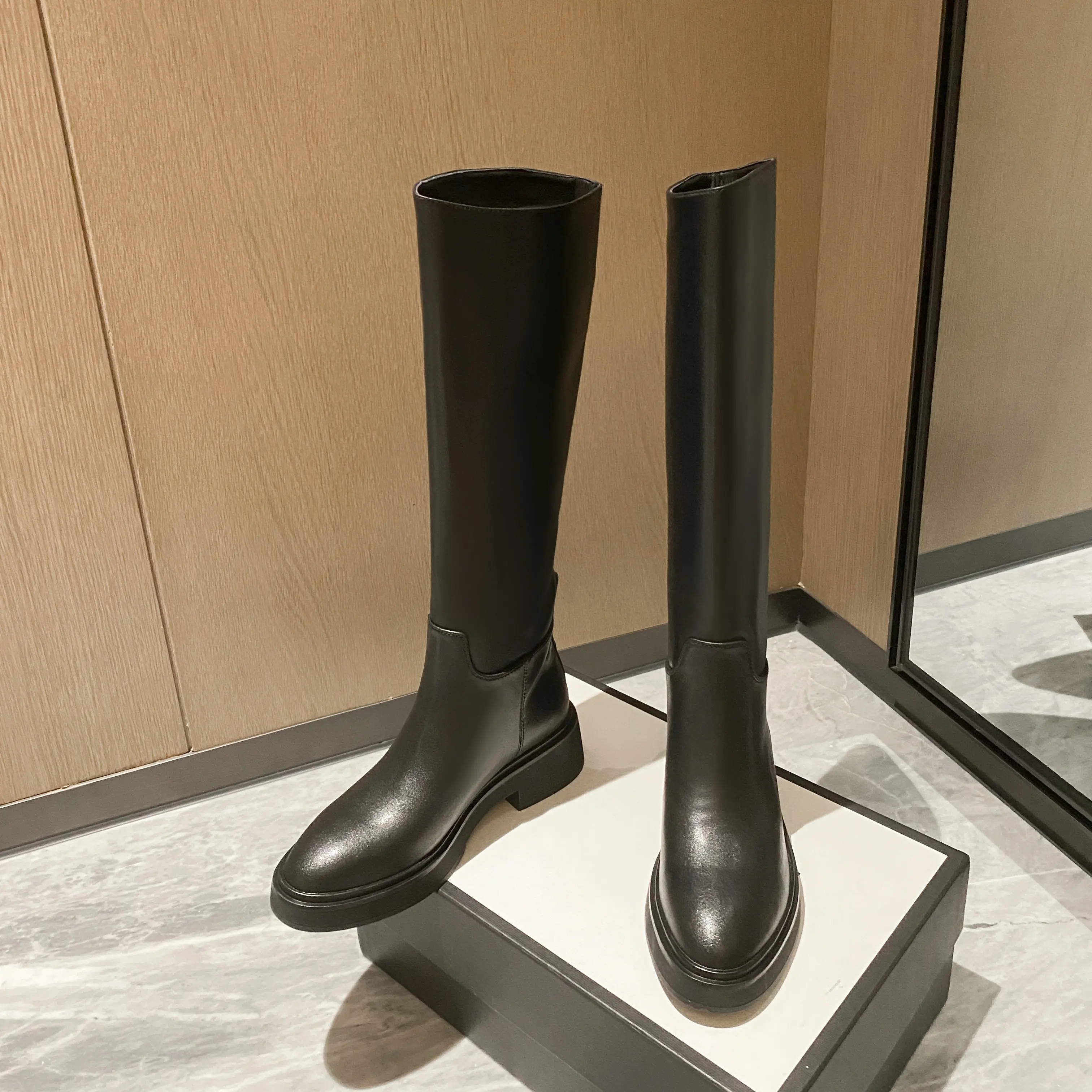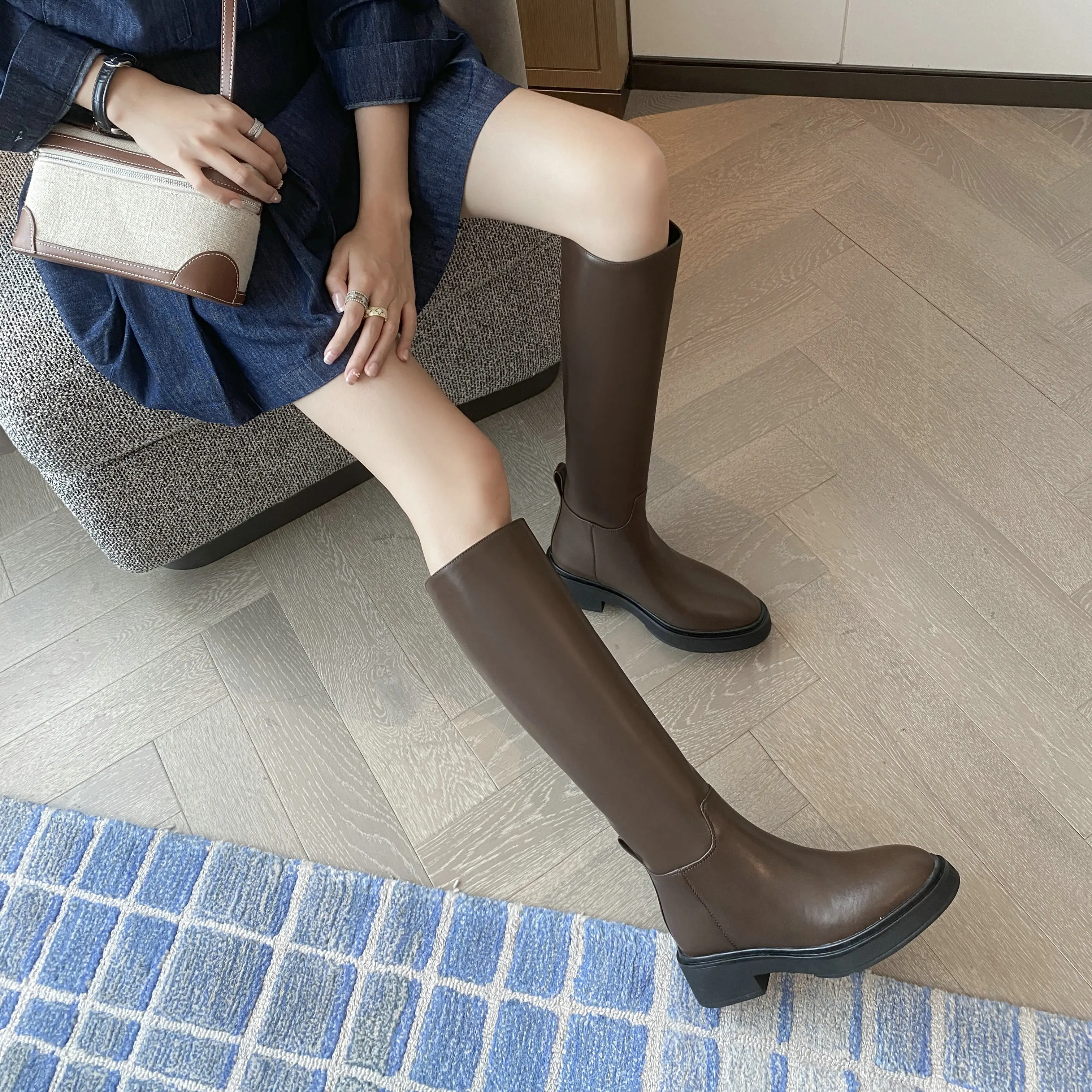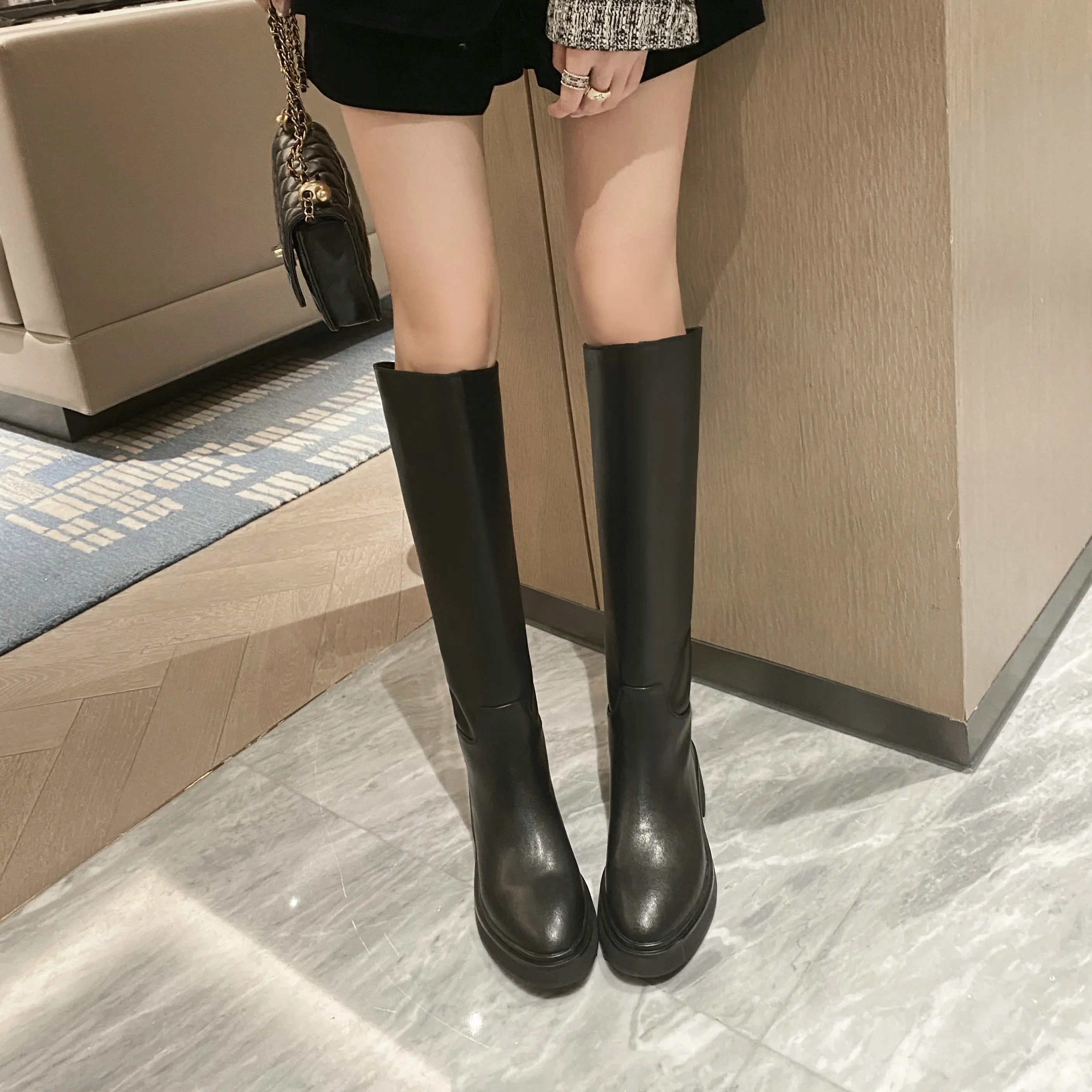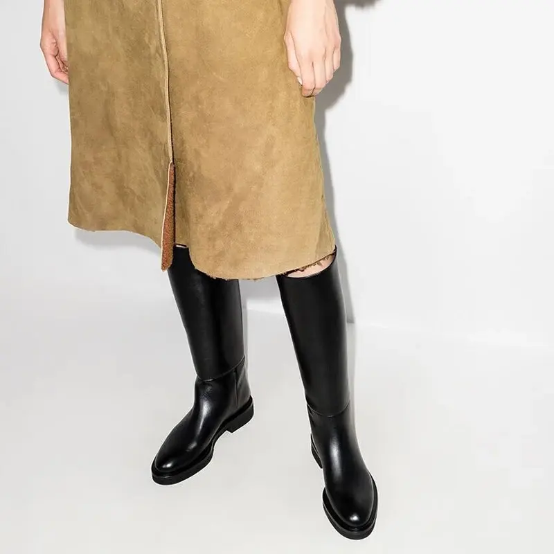 Be the first to review “QUTAA 2025 Fashion Women Knee High Boots Warm High Heels Cow Leather Square heel Motorcycle Boots Woman Lady Black Shoes 34-41”