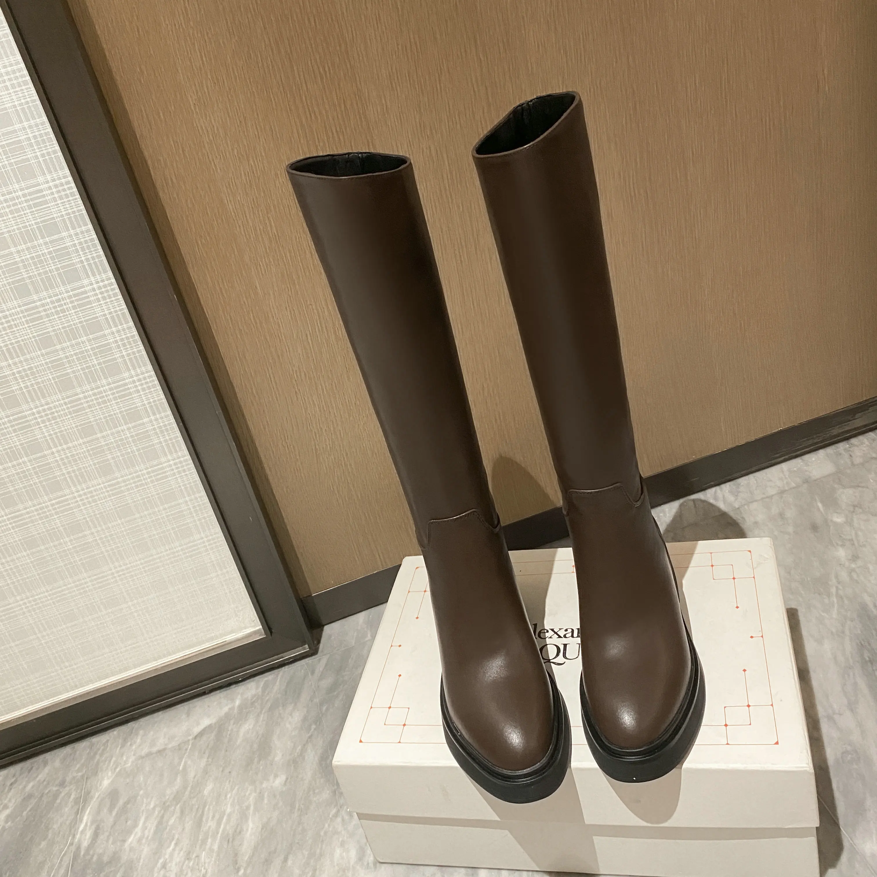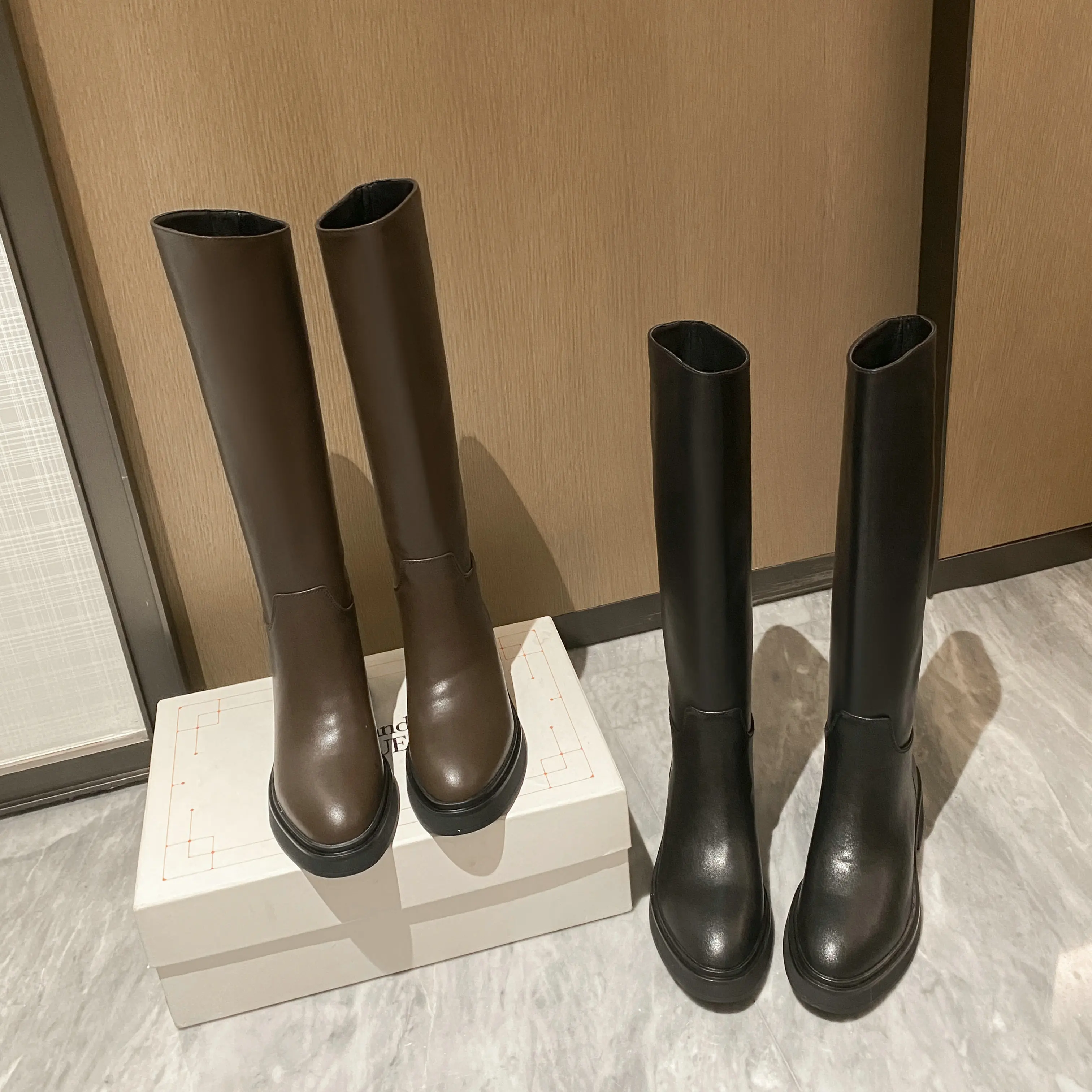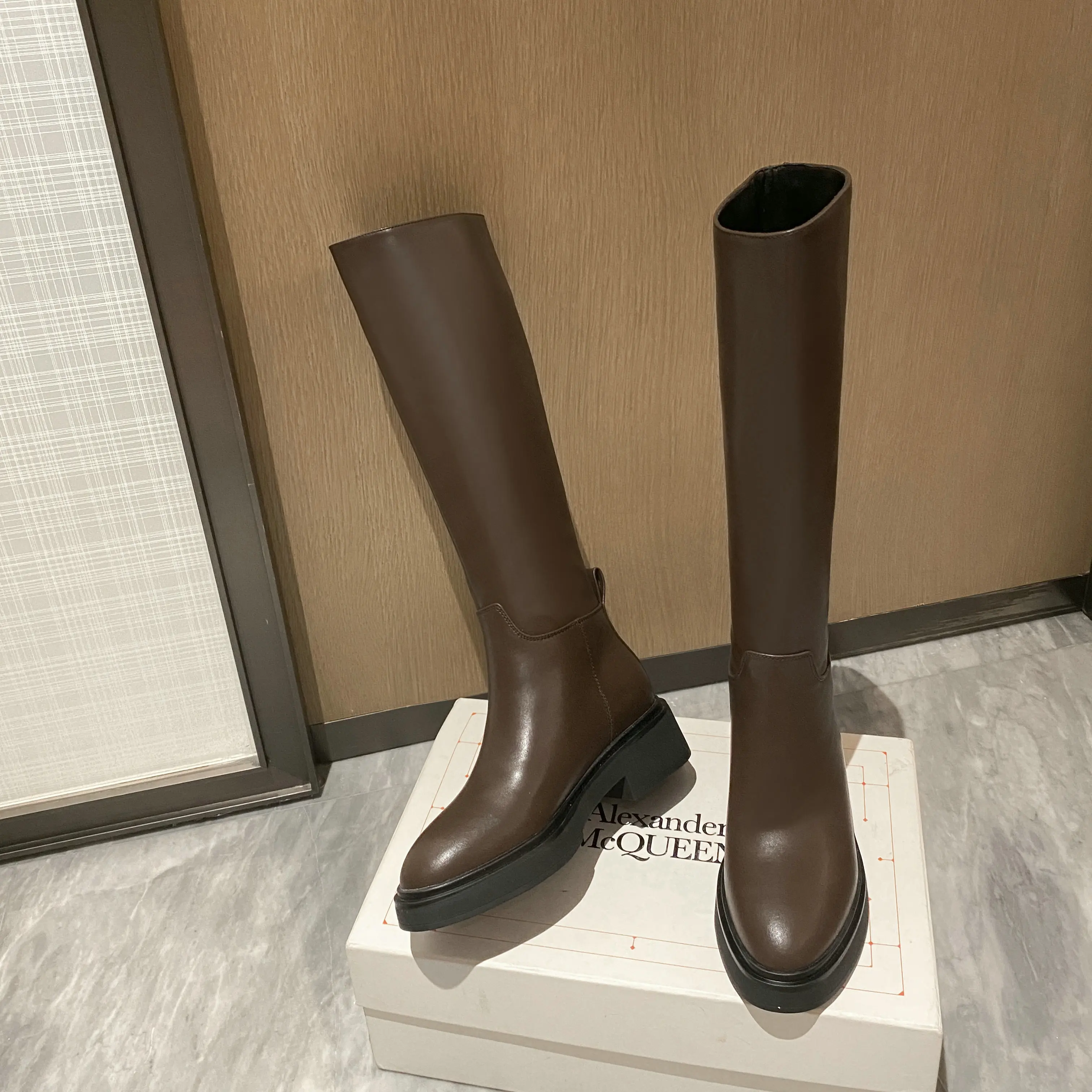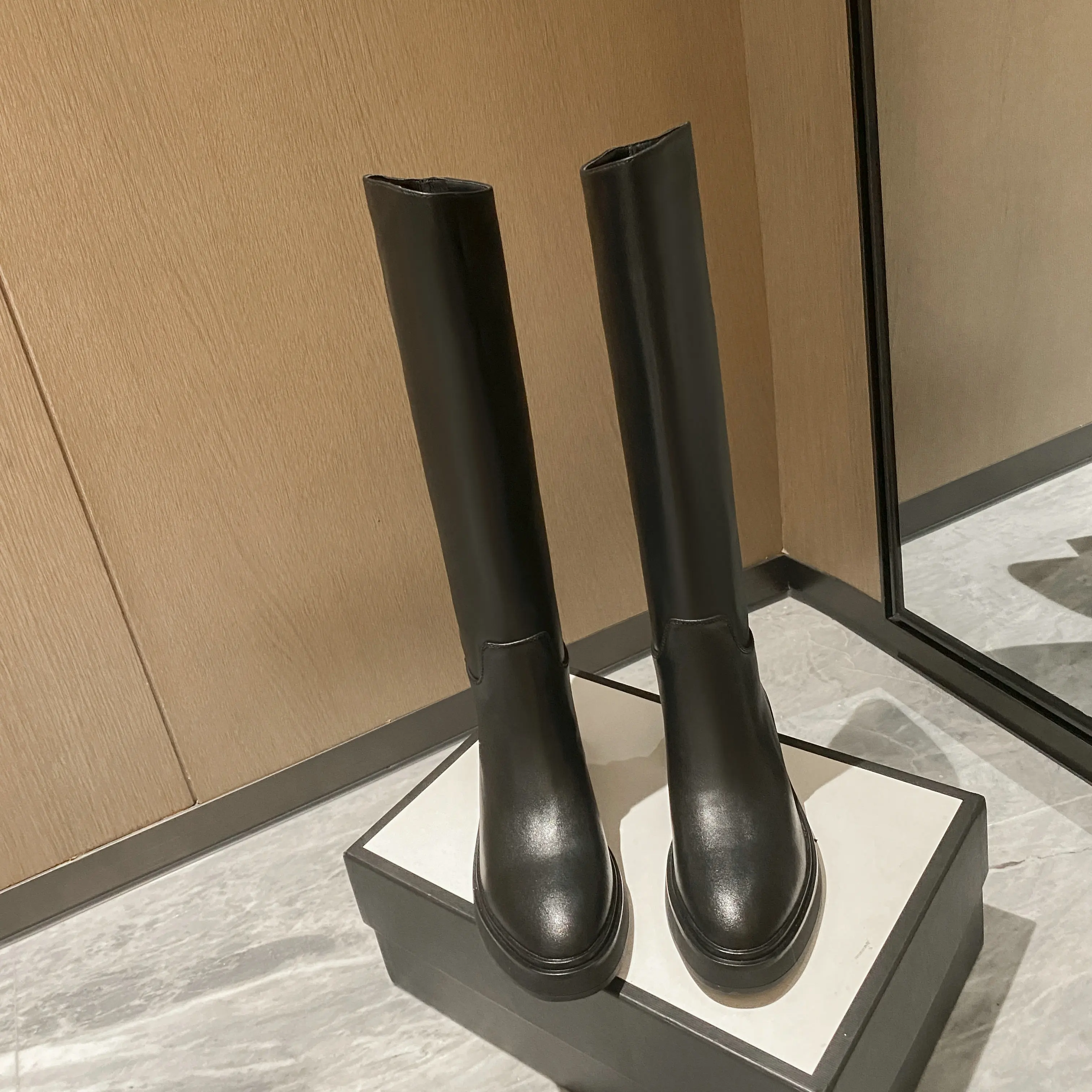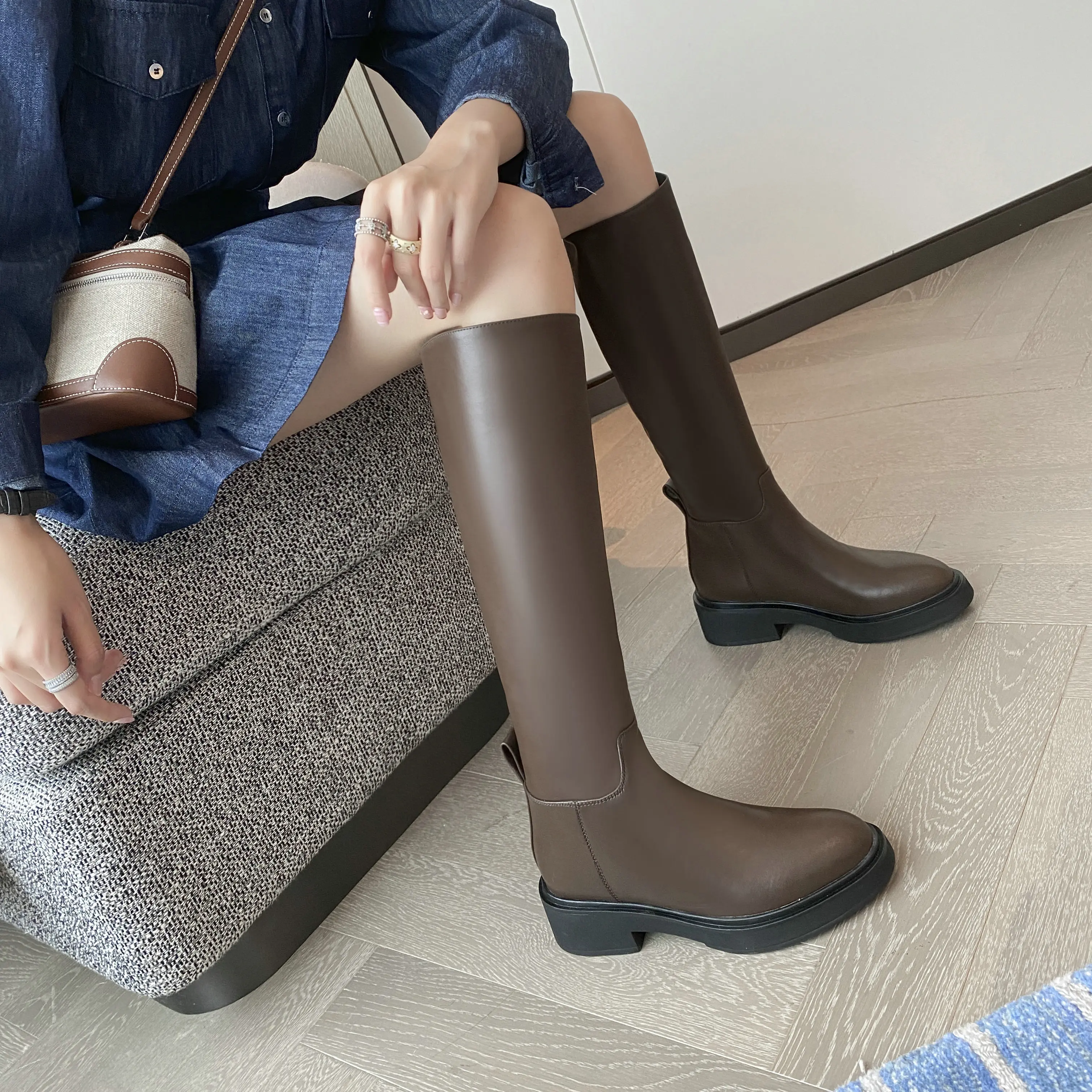Be the first to review “QUTAA 2025 Fashion Women Knee High Boots Warm High Heels Cow Leather Square heel Motorcycle Boots Woman Lady Black Shoes 34-41”