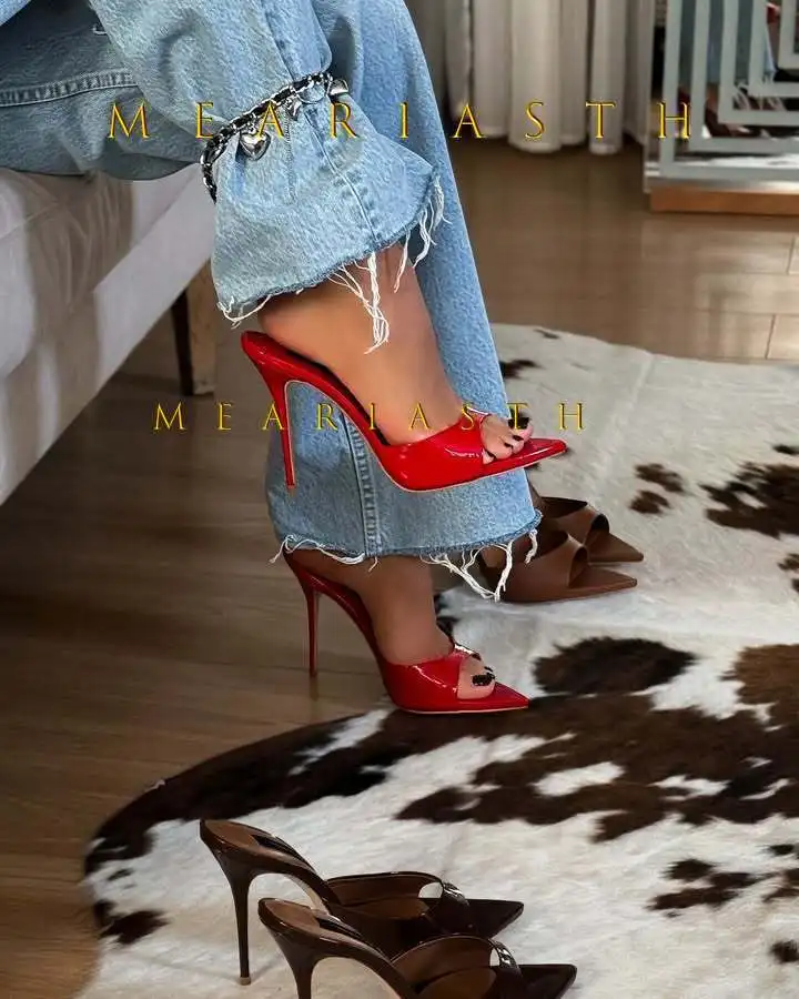 Be the first to review “Red Patent Leather Heeled Sandals Shallow Slip On Mules Solid Sexy Heels Stiletto Summer 10/8CM Shoes Peep Toe One Strap Sandals”