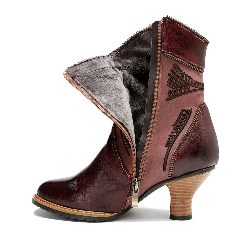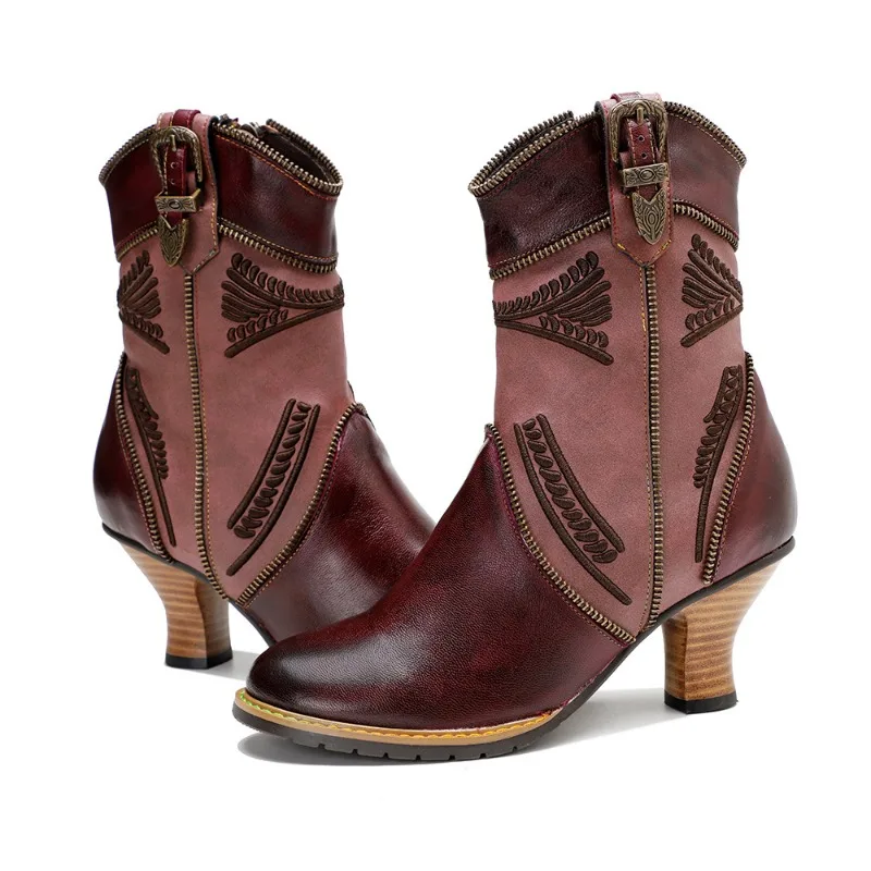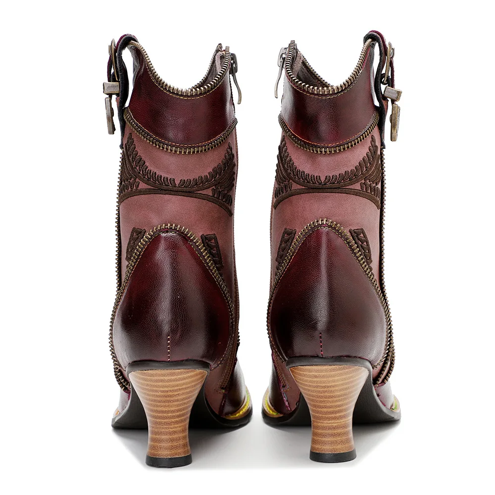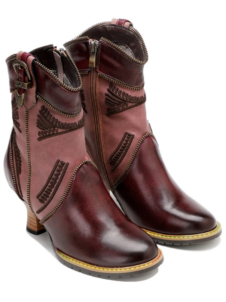 Be the first to review “Sexy Ankle Boots for Women Patchwork Purple Red Genuine Leather Women Boots 6.8CM Handmade Comforable Square Heel Botas Mujer”