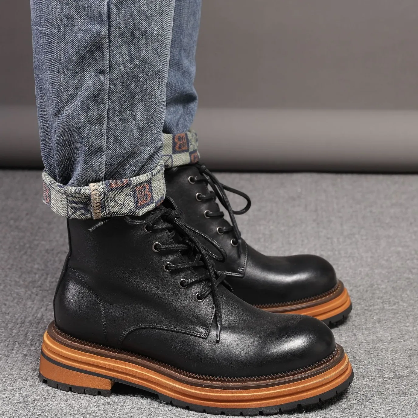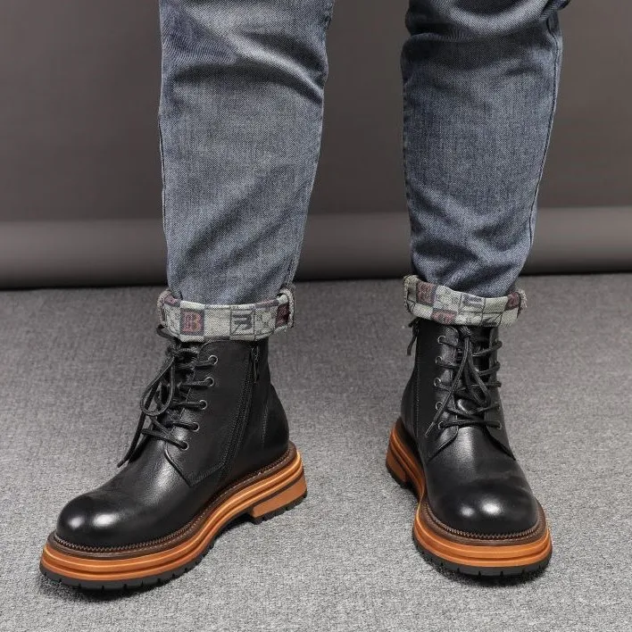 Be the first to review “Thick Soled Leather Men’s Shoes Short Boots Derby Big Toe Leather Lace Up Boots Outdoor”
