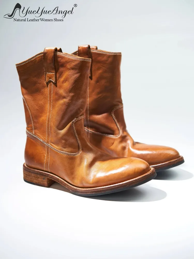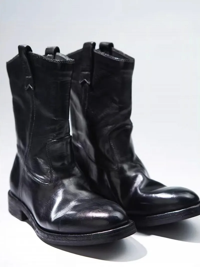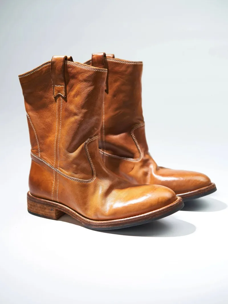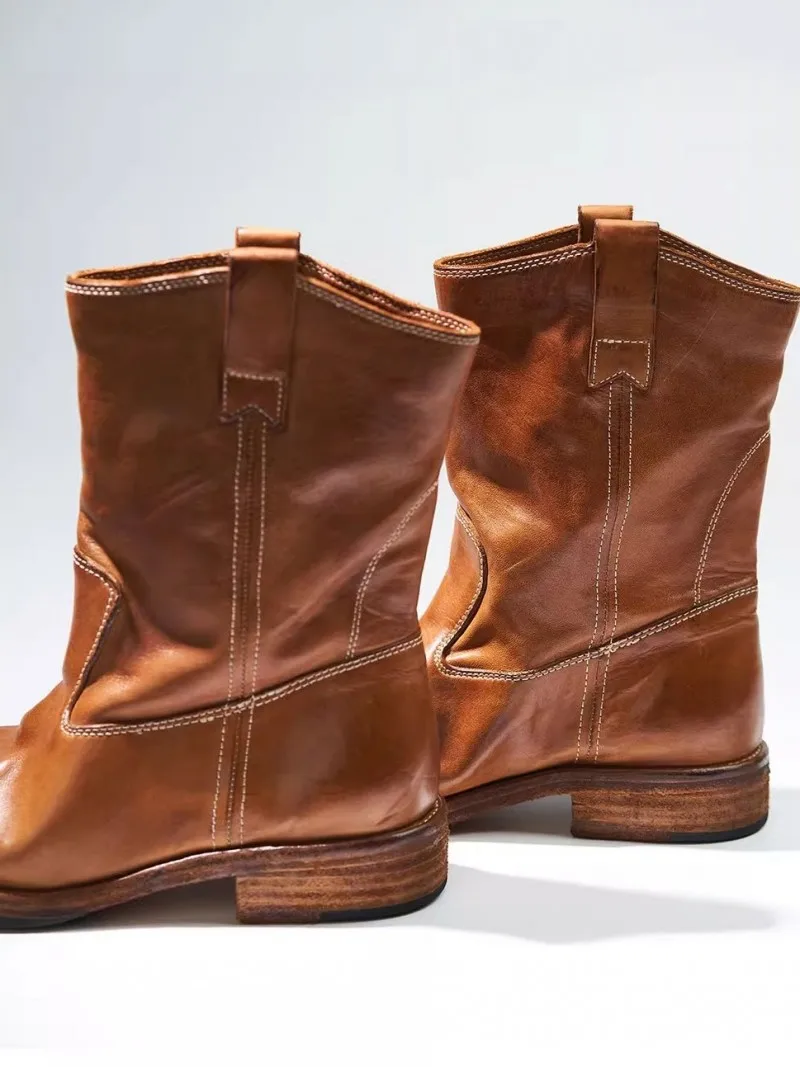 Be the first to review “Vintage Women Cowboy Boots British Style Slip-On Round Toe Horsehide Genuine Leather Knight Boots High Quality Handmade Shoes”